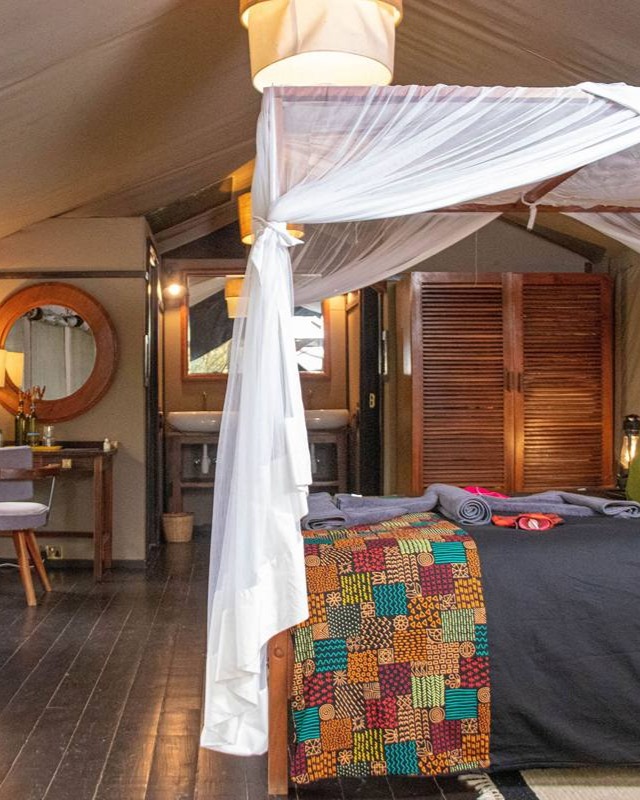 You can take nature walks and visit local villages. The camp also serves fine dining and sets up bush dinners under the stars.
